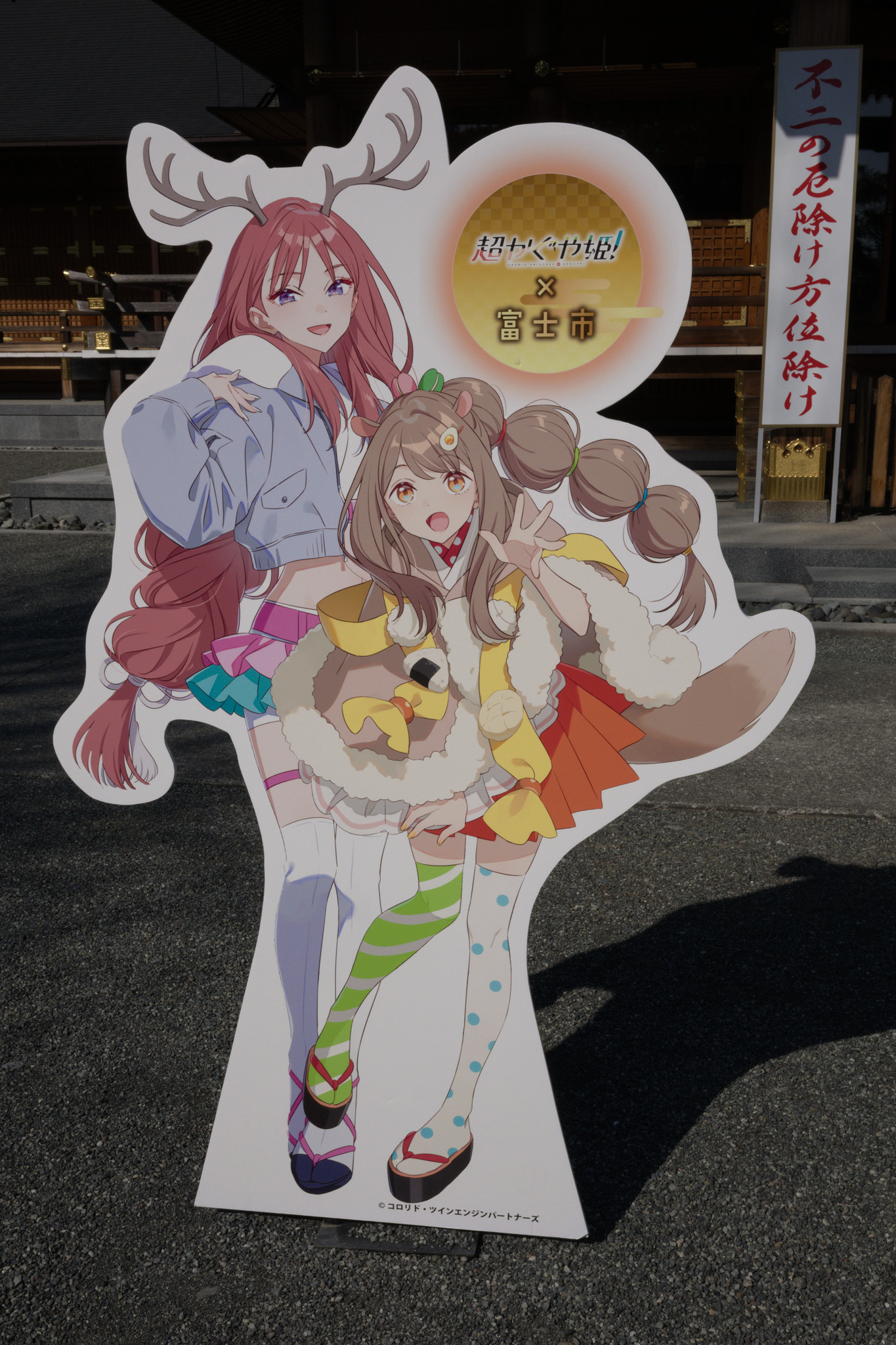 キャラクターのパネルもあるはずなので探してみたところ、1段高くなっている本殿の脇にありました。