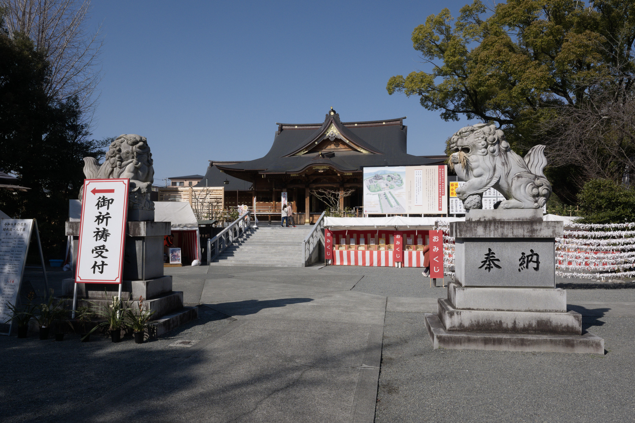 浅間神社というのは富士山信仰の神社ですね。総本社の富士山本宮浅間大社をはじめとして、富士宮市やこの富士市などにはその中でも有名な浅間神社がいくつかあります。富知六所浅間神社も名所のようで、多くの人が訪れていました。