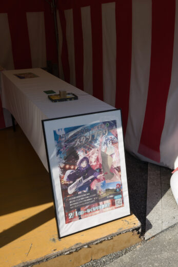 玉砂利の敷かれた境内でスタンプを探してみたところ、狛犬のちょっと先、運動会で使うようなテントの中にありました。ここのキャラクターは芦花と真実。4つ目のスタンプ獲得です!