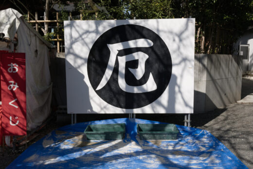 ここに投げて割ると厄を祓えるそうなので、最近思い当たることを念じながら投げてみましたが……力んだせいか的を外れ、ブルーシートに当たって割れました……。